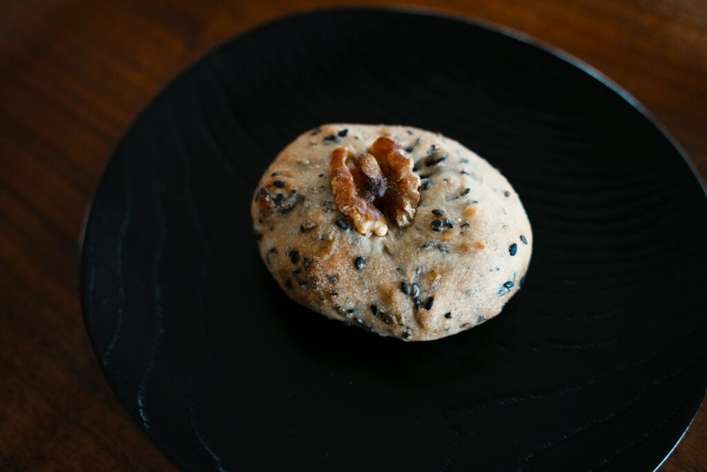 くるみを中央に押し込み、オーブンで200℃ / 15分焼いて出来上がりです。