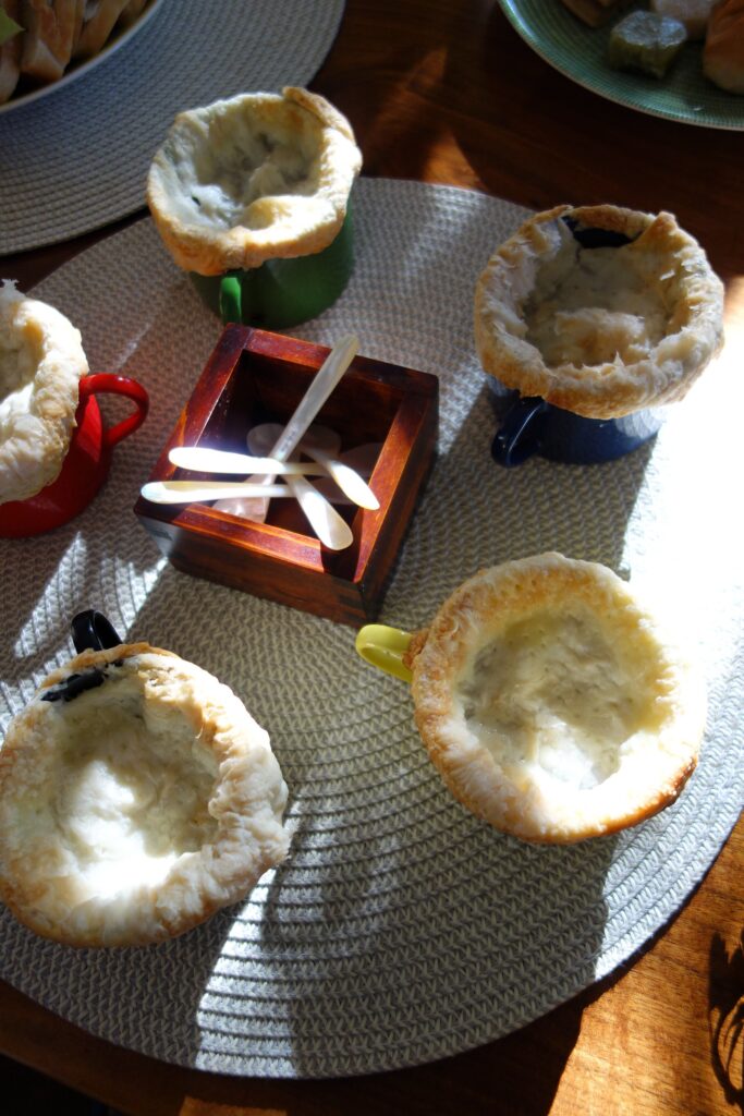 ・ポットパイ(パイ生地[粉、バター]、あさり、百合根、銀杏、きのこ)